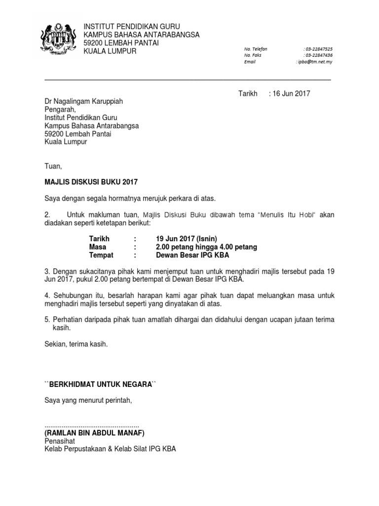 Contoh Surat Jemputan Pengarah Ipg Pdf